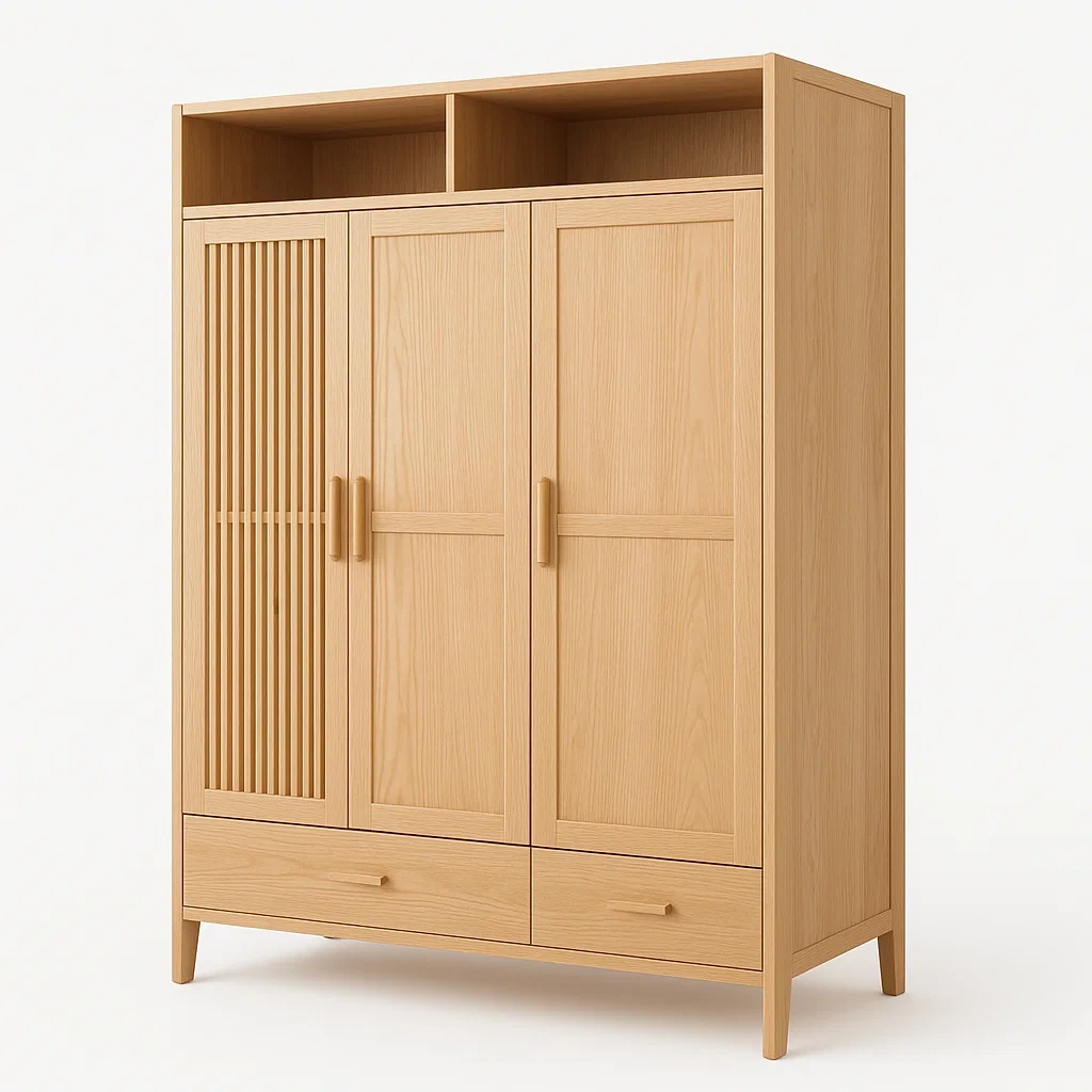 Armario Madera de Roble con Puertas Abatibles y Cajones