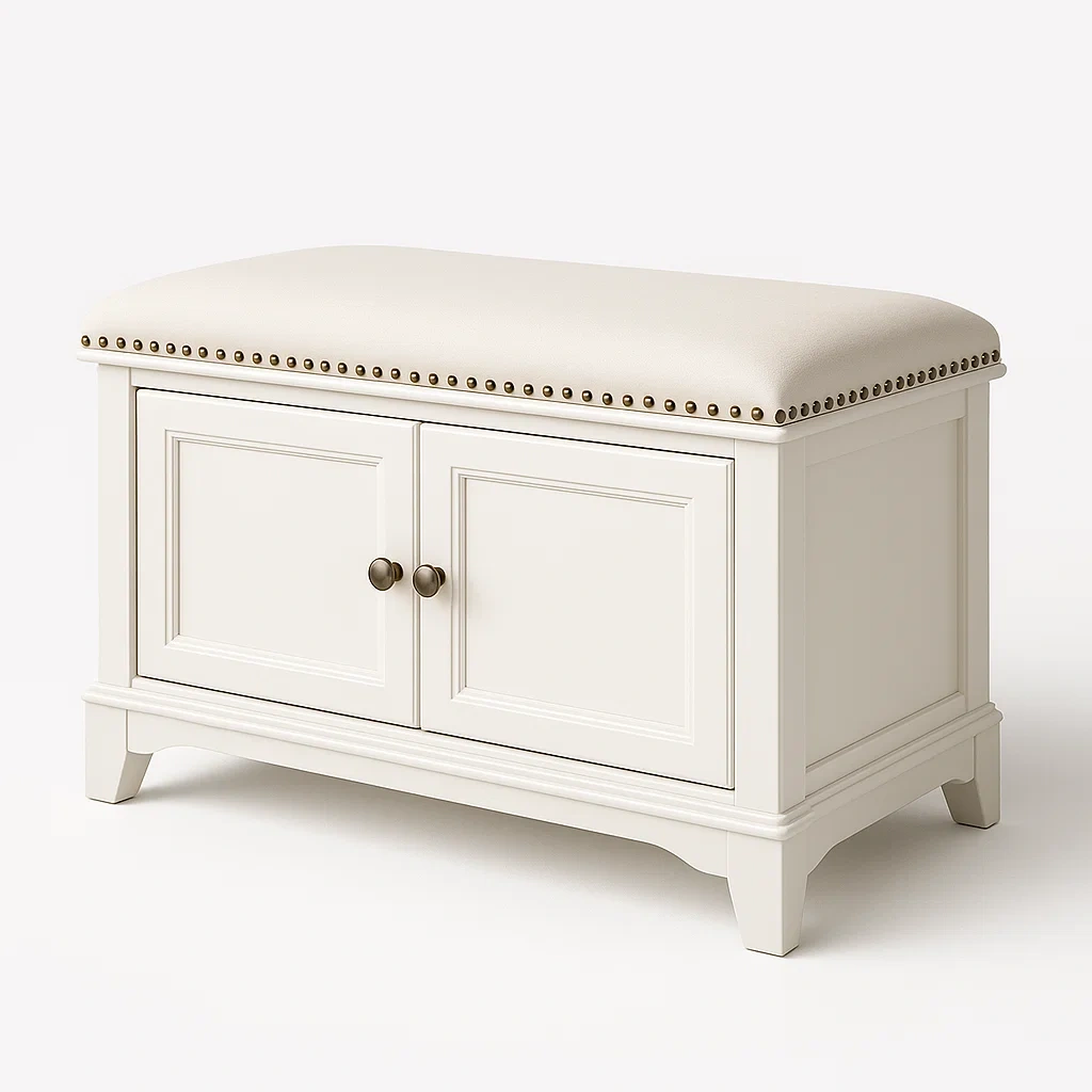 Banco de almacenamiento Madera con Cojín de Poliéster Blanco 90x45x50cm