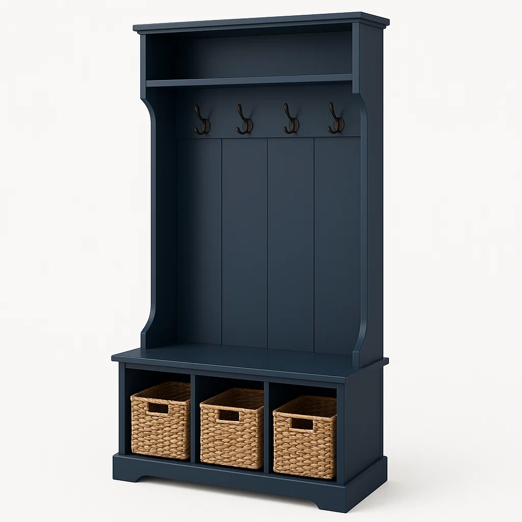 Material: Madera de alta densidad, cestas de fibras naturales.
